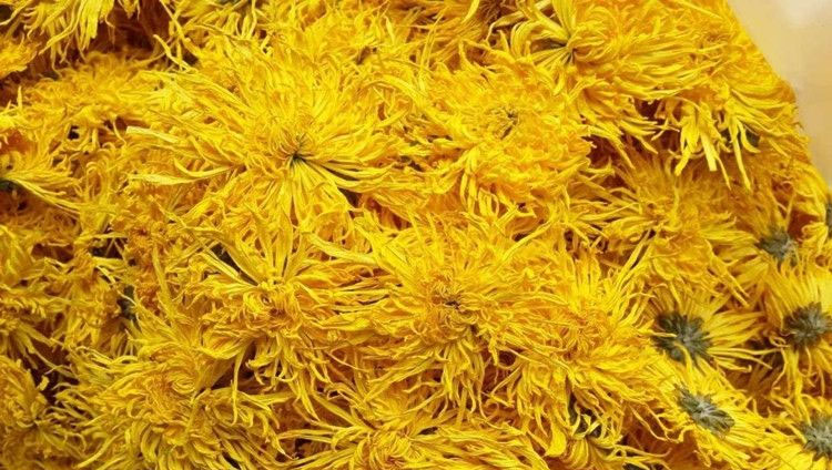 烘干后的皇菊,再次進(jìn)行揀剔,挑選出少數(shù)品相不好的。