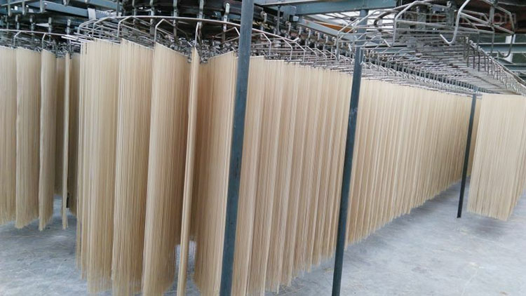 烘烤時(shí)間一般控制在8小時(shí)至12小時(shí)以上。上面的是移動(dòng)式的面條烘干工藝,對于產(chǎn)量較低的面條烘干項(xiàng)目,可使用間歇批次生產(chǎn)的固定烘干房,但是物料的烘干原則亦可大體參照上述的設(shè)定。